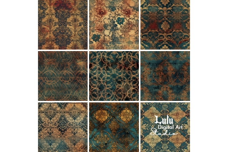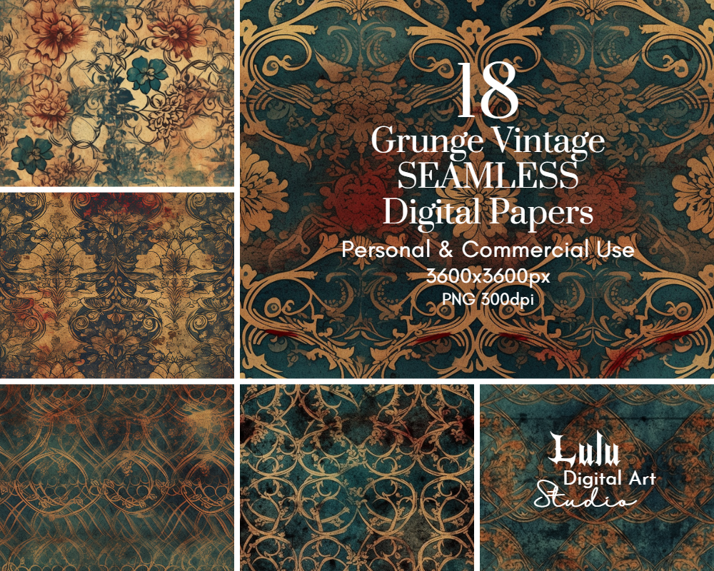 These 18 Grunge Vintage Seamless Digital Papers feature distressed and aged textures with a touch of vintage charm. These high-quality digital papers are perfect for adding a rustic and weathered look to your creative projects, including scrapbooking, graphic design, invitations, and more. Each paper comes in a seamless design for easy and professional-looking pattern creation.