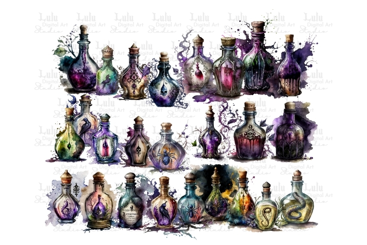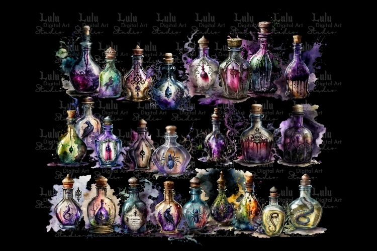 25 Dark Magic Potions - Gothic Witch Clipart Graphics